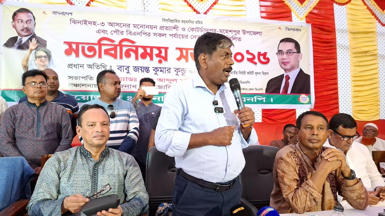 ঝিনাইদহ জেলা বিএনপির আয়োজনে মতবিনিময় সভায় সভাপতিত্ব করেন জেলা বিএনপির সভাপতি অ্যাডভোকেট মো. আব্দুল মজিদ। মতবিনিময় সভায় প্রধান অতিথি ছিলেন বিএনপির জাতীয় নির্বাহী কমিটির খুলনা বিভাগীয় সহ সাংগঠনিক সম্পাদক বাবু জয়ন্ত কুমার কুন্ডু।