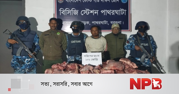 বরগুনার পাথরঘাটায় ১০২ কেজি হরিণের মাংসসহ লিটন (৪৯) নামের এক শিকারীকে আটক করেছে কোস্টগার্ডের পাথরঘাটা স্টেশন।