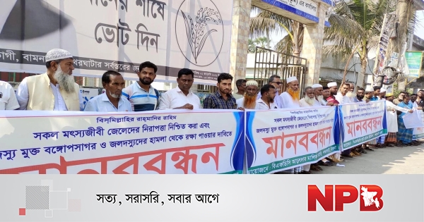 গত কয়েকদিন ধরে সাগর ও নদীতে জেলে বহরে হামলা, লুটপাট, অপহরণ ও গুলিবর্ষণের একাধিক ঘটনা ঘটেছে। এ পরিস্থিতিতে জলদস্যুদের বিরুদ্ধে প্রতিবাদ জানিয়ে পাথরঘাটায় মানববন্ধন করেছে বরগুনা জেলা মৎস্যজীবী ট্রলার মালিক সমিতি, বিএফডিসি মৎস্য আড়ৎদার সমিতি, বিএফডিসি মৎস্য পাইকার সমিতি, বরগুনা জেলা ফিশিং ট্রলার শ্রমিক ইউনিয়ন ও বিএফডিসি মৎস্য বাজার ঘাট শ্রমিক ইউনিয়নসহ কয়েক হাজার মৎস্যজীবী।
