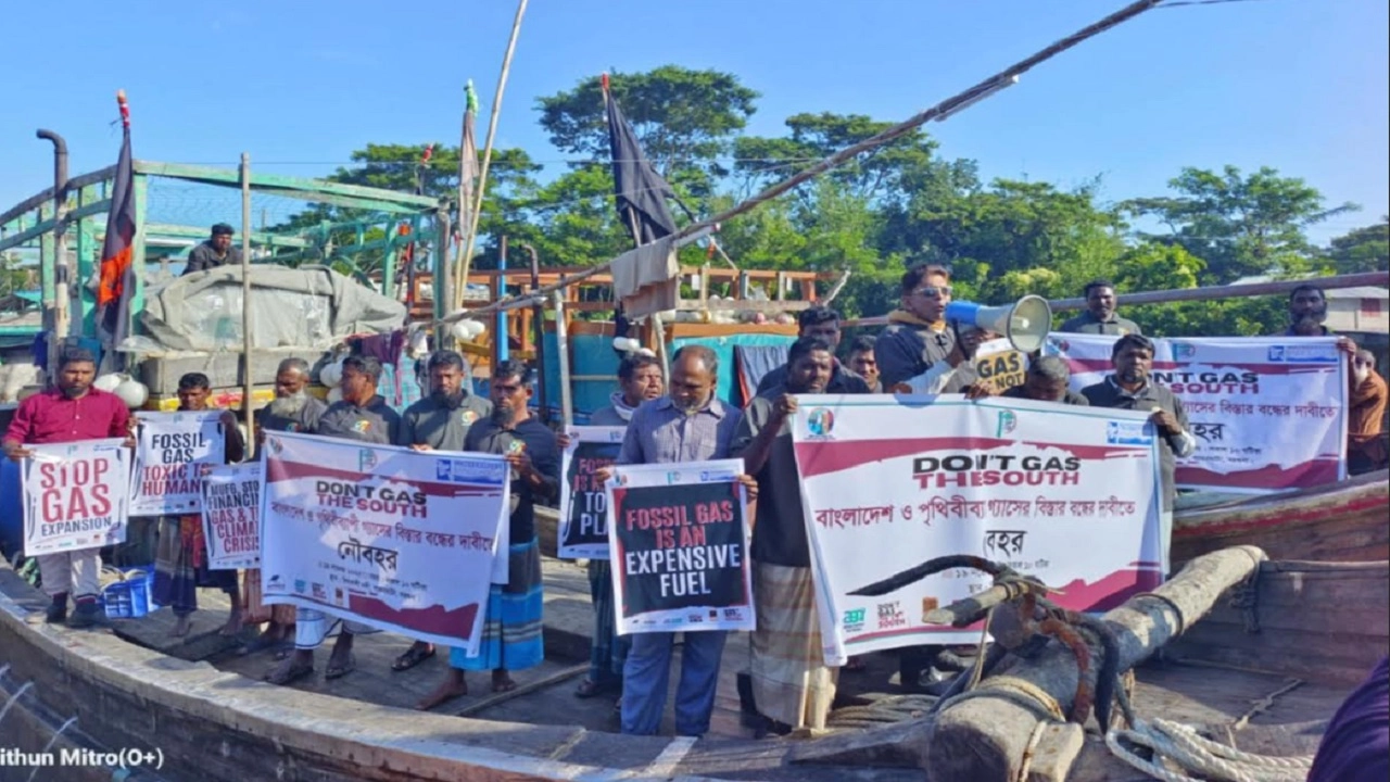 বাংলাদেশ ও পৃথিবীব্যাপী গ্যাসের বিস্তার বন্ধের দাবিতে বরগুনার পাথরঘাটায় নৌবহর কর্মসূচি পালিত হয়েছে।
