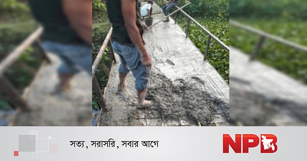 বরিশালের আগৈলঝাড়ায় একটি আয়রন ব্রিজে রডের পরিবর্তে বাশেঁর কঞ্চি দিয়ে ঢালাই