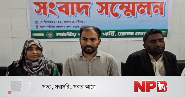 ভোলা জেলা জাতীয় নাগরিক পার্টি (এনসিপি) নবগঠিত আহ্বায়ক কমিটি স্থগিত করে তৃণমূলকে প্রাধান্য দিয়ে পুনর্গঠনের দাবিতে এক সংবাদ সম্মেলন অনুষ্ঠিত হয়েছে।
