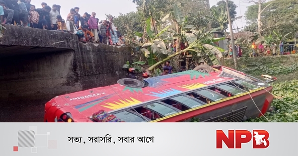 স্থানীয় বাসিন্দা শাহাদাত হোসেন বলেন, “আমি বাড়িতে কাজ করছিলাম। হঠাৎ বিকট শব্দ শুনে দৌড়ে এসে দেখি বাস খালে পড়ে আছে। এরপর যাত্রীদের উদ্ধার করে হাসপাতালে পাঠাই।”
