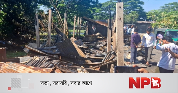 চাঁদপুরের ফরিদগঞ্জ কালির বাজারে আগুনে পুড়ে যাওয়া ব্যবসা প্রতিষ্ঠান।