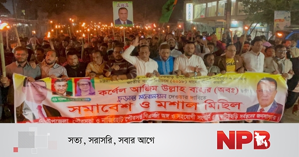 চট্টগ্রামের ফটিকছড়িতে বিএনপির মনোনয়ন পরিবর্তনের দাবিতে মশাল মিছিল করেছে উপজেলা বিএনপির আহ্বায়ক কর্নেল (অব.) আজিম উল্লাহ বাহারের অনুসারী নেতাকর্মীরা।