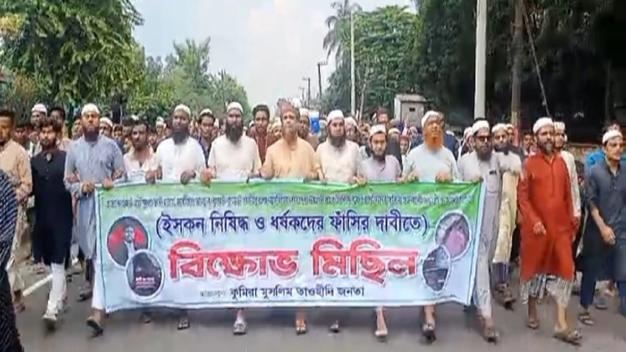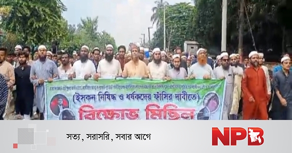 সীতাকুণ্ডে ইসকন নিষিদ্ধের দাবিতে বিক্ষোভ মিছিল