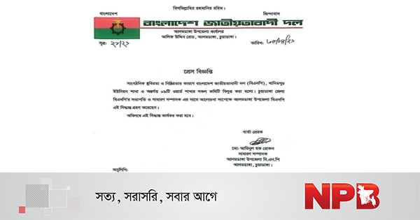 এতে আরও বলা হয়, সিদ্ধান্তটি অবিলম্বে কার্যকর হবে এবং পরবর্তীতে দলীয় সাংগঠনিক কার্যক্রমকে আরও গতিশীল ও শক্তিশালী করতে প্রয়োজনীয় ব্যবস্থা গ্রহণ করা হবে।