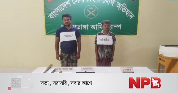আটককৃতরা হলেন- আলমডাঙ্গা উপজেলার নওদা বন্ডবিল গ্রামের ঠান্ডুর ছেলে তারিফ হাসান (৩২) এবং এরশাদপুর গ্রামের মৃত বজলুর রহমানের ছেলে রুহুল আমিন (৪৫)।