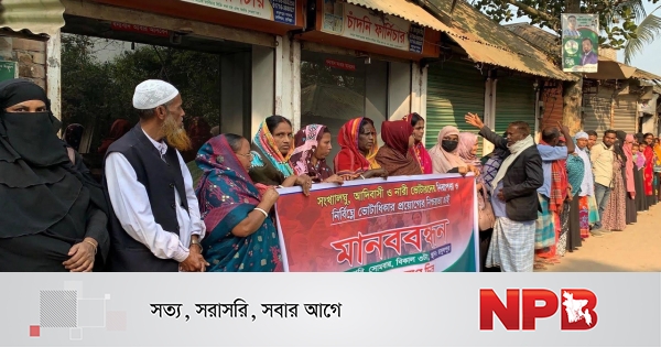 সোমবার (৯ ফেব্রুয়ারি) বিকেল ৩টায় সংগঠনটির পক্ষ থেকে দেশব্যাপী কর্মসূচির অংশ হিসেবে কুমিল্লার দেবীদ্বার উপজেলার ৩ নম্বর রসুলপুর ইউনিয়নের রসুলপুর বাজারে এই মানববন্ধন অনুষ্ঠিত হয়।