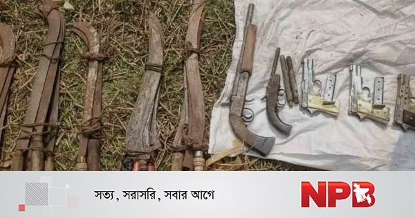 অভিযানের একপর্যায়ে পুকুর থেকে কয়েকটি পিস্তল ও বন্দুক পাওয়া যায়। এ ছাড়া দুটি বস্তায় মোড়ানো অবস্থায় বেশ কিছু ধারালো অস্ত্র উদ্ধার করা হয়েছে।