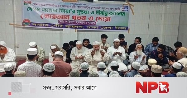 শনিবার বিকেলে সাভারের আনন্দ পুর দারুল উলুম মাদ্রাসায় সাভার পৌর ছাত্রদল নেতা মোঃ শহীদুল ইসলাম সোহাগের আয়োজনে এই কোরআন খতম ও দোয়া অনুষ্ঠিত হয়।
