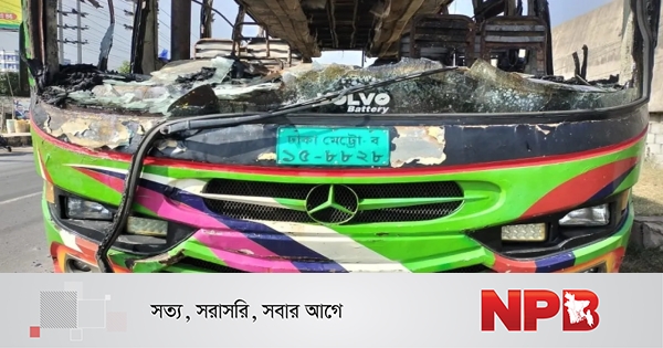 কেরানীগঞ্জে দাঁড়িয়ে থাকা বাসে দুর্বৃত্তদের আগুন