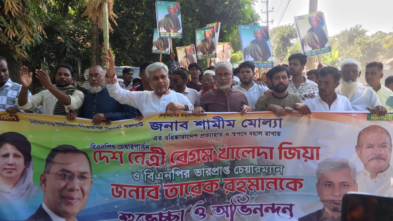 মুন্সীগঞ্জের টঙ্গীবাড়ী উপজেলার দিঘিরপাড় ইউনিয়ন বিএনপির সভাপতি ও সাবেক উপজেলা যুবদলের সভাপতি মো. শামীম মোল্যার বহিষ্কারাদেশ প্রত্যাহার ও তাঁকে স্বপদে বহাল রাখায় একটি আনন্দ র্যালি অনুষ্ঠিত হয়েছে। মঙ্গলবার (১৮ নভেম্বর) বেলা...