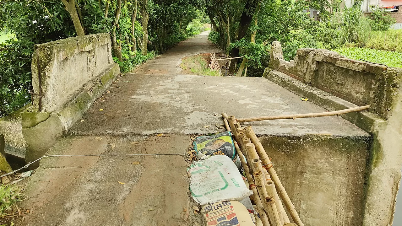 দীর্ঘদিন ধরে কালভার্টটির দুই পাশ ভেঙে বড় গর্তের সৃষ্টি হওয়ায় ঝুঁকি...