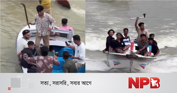 ফরিদপুরের ভাঙ্গায় কুমার নদে দেশীয় অস্ত্র নিয়ে মহড়া দিয়েছে একদল কিশোর-তরুণ।