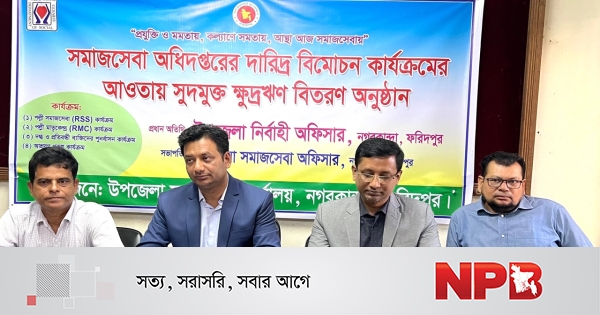 ফরিদপুরের নগরকান্দায় সমাজসেবা অধিদপ্তরের দারিদ্র বিমোচন কার্যক্রমের আওতায় সুদমুক্ত ক্ষুদ্র ঋণের চেক বিতরণ করা হয়েছে।