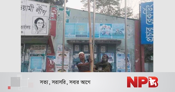 পরে কার্যালয়ের সামনে ও বঙ্গবন্ধু শেখ মুজিবুর রহমান এবং সাবেক প্রধানমন্ত্রী শেখ হাসিনার ছবির ওপর জমে থাকা ধুলাবালি পরিষ্কার করেন তারা।