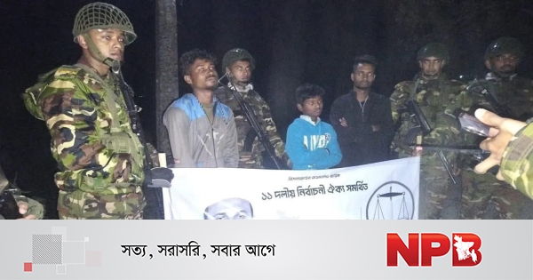 জানা যায়, ওই দুই কেন্দ্রের সামনে ধানের শীষ ও দাঁড়িপাল্লা প্রতীকের ব্যানার টানানোর সময় সেনাবাহিনীর সদস্যরা তাদের হাতেনাতে আটক করেন। পরে দায়িত্বপ্রাপ্ত নির্বাহী ম্যাজিস্ট্রেট ঘটনাস্থলে ভ্রাম্যমাণ আদালত পরিচালনা করে চারজনকে ৭দিন করে বিনাশ্রম কারাদণ্ড ও পাঁচ হাজার টাকা করে অর্থদণ্ড প্রদান করেন।