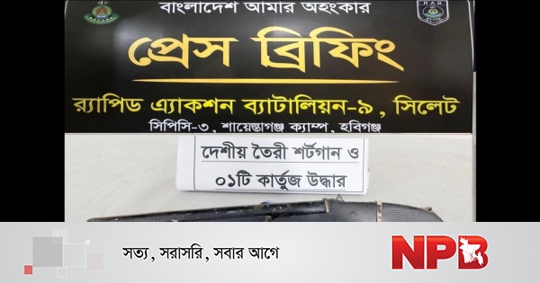 হবিগঞ্জের চুনারুঘাট উপজেলায় অভিযান চালিয়ে একটি দেশীয় শটগান ও একটি কার্তুজ উদ্ধার করেছে র্যাব-৯।