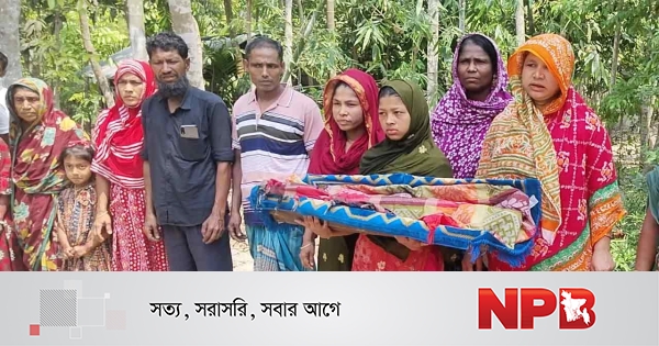 ঝালকাঠিতে সন্তানের লাশ নিয়ে মানববন্ধনে দাঁড়িয়ে বিচার চেয়েছেন এক মা।