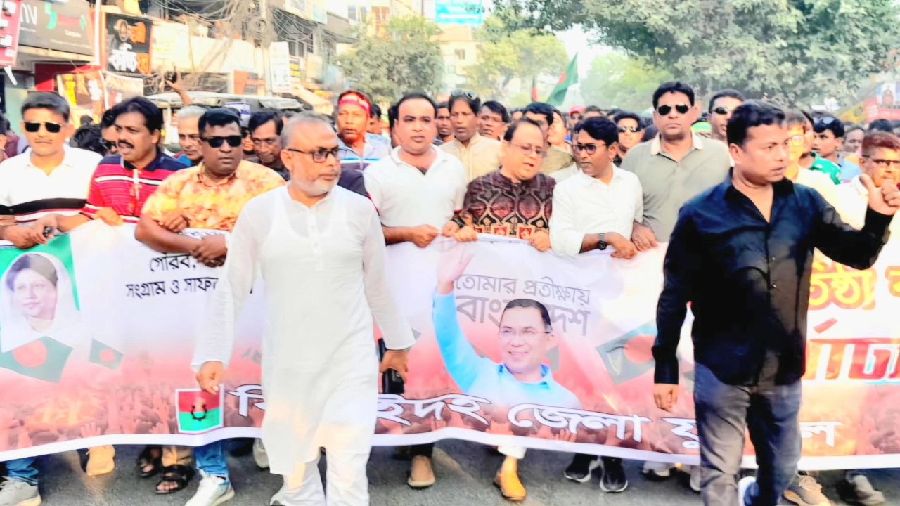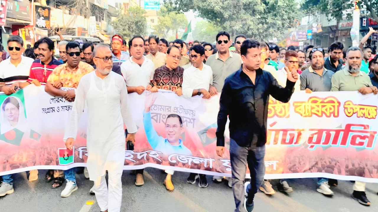 জাতীয়তাবাদী যুবদলের প্রতিষ্ঠাবার্ষিকী উপলক্ষে ঝিনাইদহে বর্ণাঢ্য র্যালি ও সমাবেশ অনুষ্ঠিত হয়েছে। এসময় বাদ্য বাজনা বাজিয়ে, নেচে-গেয়ে র্যালিতে অংশ নেন নেতাকর্মীরা। সোমবার (২৭ অক্টোবর) বিকাল চারটায় জেলা শহরের উজির হাইস্কুল মাঠ থেকে...