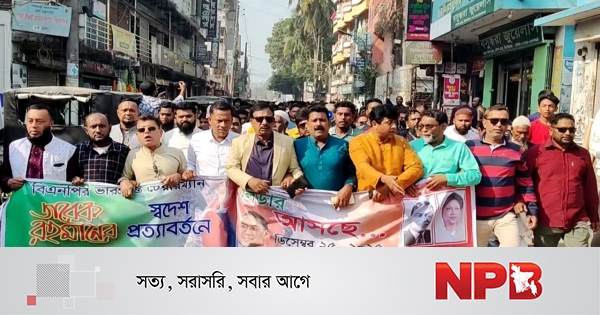 মঙ্গলবার (২৩ ডিসেম্বর) দুপুরে জেলা বিএনপির আয়োজনে এক বিশাল আনন্দ শোভাযাত্রা ঐতিহাসিক রথখলা মাঠ থেকে বের হয়।
