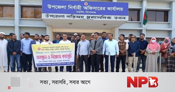 বাংলাদেশ সরকারি কর্মচারী দাবি আদায় ঐক্য পরিষদের ঘোষিত কর্মসূচির অংশ হিসেবে বৈষম্যমূলক ৯ম পে-স্কেলের গেজেট প্রকাশের দাবিতে কিশোরগঞ্জের তাড়াইল উপজেলায় সরকারি কর্মচারীরা অবস্থান ও বিক্ষোভ কর্মসূচি পালন করেছেন।