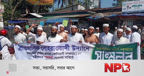 কাদিয়ানি সম্প্রদায়কে রাষ্ট্রীয়ভাবে অমুসলিম ঘোষণার দাবিতে আগামী ১৫ নভেম্বর ২০২৫ (শনিবার) ঢাকার ঐতিহাসিক সোহরাওয়ার্দী উদ্যানে অনুষ্ঠিতব্য আন্তর্জাতিক খতমে নবুয়াত মহাসম্মেলন সফল করার লক্ষ্যে কিশোরগঞ্জের তাড়াইলে আলোচনা সভা ও গণমিছিল অনুষ্ঠিত হয়েছে।
