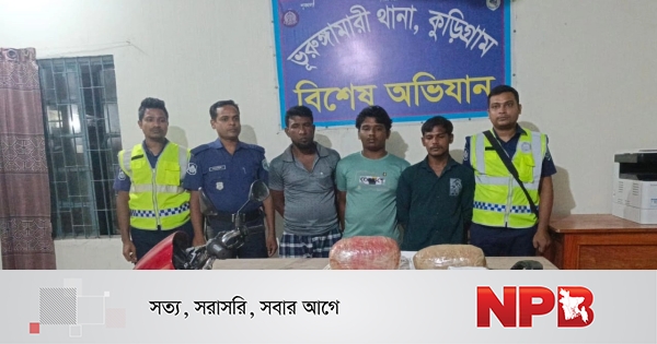 কুড়িগ্রামের ভূরুঙ্গামারীতে ৬ কেজি ভারতীয় গাঁজাসহ শ্বশুর, জামাই ও ভাগ্নেকে আটক করেছে থানা পুলিশ।