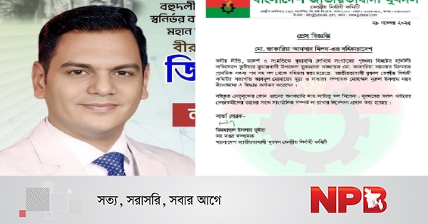 শনিবার (২৯ নভেম্বর) বাংলাদেশ জাতীয়তাবাদী যুবদল কেন্দ্রীয় কমিটির সহ-দপ্তর সম্পাদক মিনহাজুল ইসলাম ভূঁইয়ার স্বাক্ষরিত এক বিজ্ঞপ্তিতে এ তথ্য জানানো হয়।