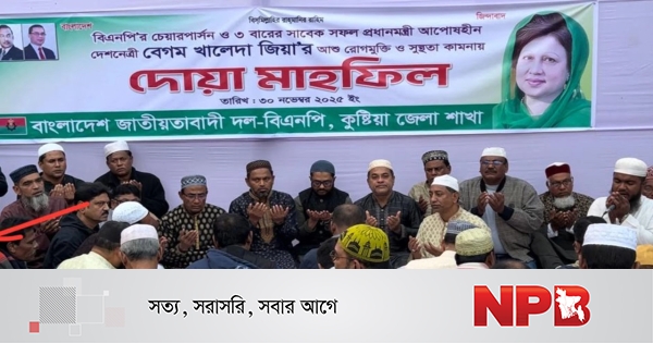 বাংলাদেশ জাতীয়তাবাদী দল (বিএনপি) চেয়ারপার্সন ও সাবেক প্রধানমন্ত্রী বেগম খালেদা জিয়ার দ্রুত রোগমুক্তি ও দীর্ঘায়ু কামনায় কুষ্টিয়া জেলা বিএনপির আয়োজনে দোয়া মাহফিল অনুষ্ঠিত হয়েছে।