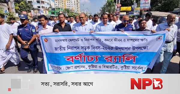 ‘মানসম্মত হেলমেট ও নিরাপদ গতি, কমবে জীবন ও সম্পদের ক্ষতি’ এই স্লোগানে নানা আয়োজনে কুষ্টিয়ায় জাতীয় নিরাপদ সড়ক দিবস পালিত হয়েছে।