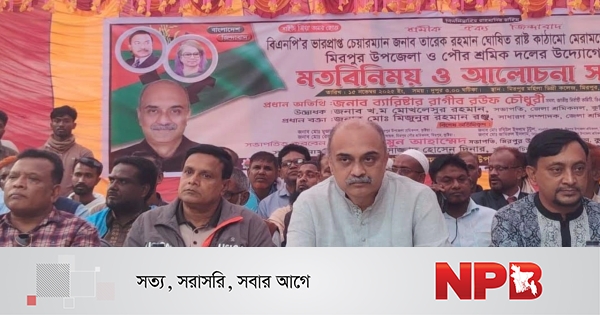 শনিবার (১৫ নভেম্বর) বিকেলে মিরপুর উপজেলা মহিলা ডিগ্রি কলেজ মাঠে তারেক রহমান ঘোষিত ৩১ দফা বাস্তবায়নের দাবিতে শ্রমিকদলের উদ্যোগে মতবিনিময় ও আলোচনা সভায় প্রধান অতিথির বক্তব্যে তিনি এসব কথা বলেন।