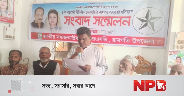 শনিবার(৬ ডিসেম্বর) সকালে এই ঘটনার প্রতিবাদে সংবাদ সম্মেলন করে রামগতি উপজেলা জেএসডি। সংবাদ সম্মেলনে উপজেলা জেএসডির সাধারণ সম্পাদক লোকমান হোসেন বাবলু বলেন, ৮ ডিসেম্বর জেএসডি ও গণতন্ত্র মঞ্চের আয়োজনে জনসভা হবে। আ স ম আবদুর রব, তানিয়া রব ও জোটের অন্যান্য নেতারা উপস্থিত থাকবেন। ৮ তারিখের জনসভা সফল করার জন্য আমাদের সর্বস্তরের নেতা-কর্মীরা যখন ব্যাস্ত ঠিক সেই মুহুর্তে গত রাতে ঊর্ধ্বতন নেতৃত্বের নির্দেশে ডা.জামাল উদ্দিন, সিরাজ উদ্দিন, মো.জুয়েল, শিবলি নোমান, শিব্বির, ইরাজ ও হান্নানের নেতৃত্বে বড়খেরি ইউনিয়নের কার্যালয়ে হামলা চালিয়ে ভাংচুর করে।