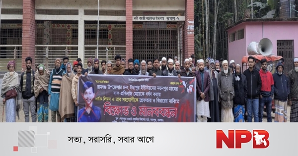 রবিবার বিকেলে নয়নপুর সরকারি প্রাথমিক বিদ্যালয়ের সামনে এলাকাবাসীর উদ্যোগে অনুষ্ঠিত মানববন্ধনে এতে স্থানীয় লোকজন, ভুক্তভোগী পরিবার, বিভিন্ন সামাজিক সংগঠনের প্রতিনিধিরা অংশ নেয়।