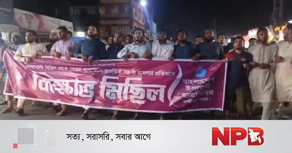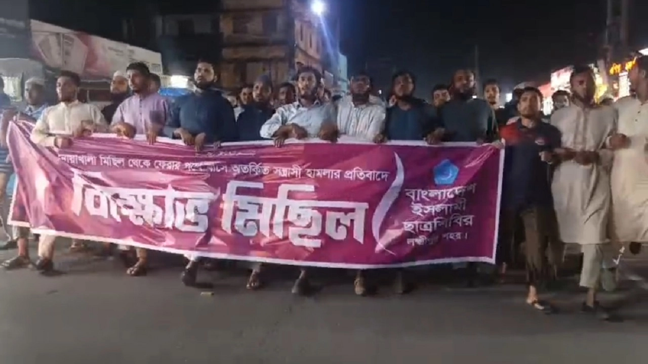 নোয়াখালীতে মিছিল থেকে ফেরার পথে নেতাকর্মীদের উপর হামলার প্রতিবাদে লক্ষ্মীপুরে বিক্ষোভ মিছিল করেছে বাংলাদেশ ইসলামী ছাত্রশিবির লক্ষ্মীপুর শহর শাখা।