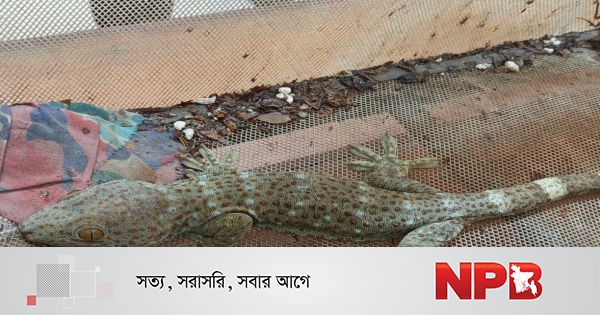 জালের বিশেষ খাঁচায় বন্দি থাকা বিলুপ্তপ্রায় বন্যপ্রাণী তিনটি তক্ষক উদ্ধার করেছে লালমনিরহাট জেলা গোয়েন্দা শাখা (ডিবি) পুলিশ।