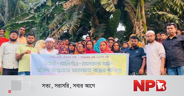 মুন্সীগঞ্জের টঙ্গীবাড়ি উপজেলায় ডহরী–বালিগাঁও–তালতলা (গৌরগঞ্জ) খালে অবৈধভাবে বাল্কহেড চলাচল বন্ধের দাবিতে মানববন্ধন করেছেন স্থানীয় বাসিন্দারা।