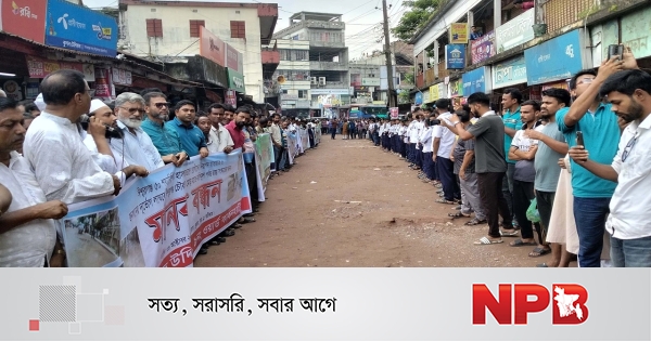 রাস্তার দ্রুত সংস্কারের দাবিতে মঙ্গলবার (৮ অক্টোবর) ঈশ্বরগঞ্জ চৌরাস্তা মোড়ে সর্বস্তরের জনসাধারণ মানববন্ধন কর্মসূচি পালন করেন।