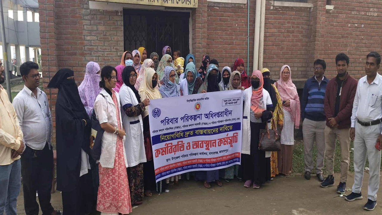 জামালপুরের মাদারগঞ্জে পরিবার পরিকল্পনা অধিদপ্তরাধীন নিয়োগবিধি দ্রুত বাস্তবায়নের দাবিতে কর্মচারীরা কর্মবিরতি ও অবস্থান কর্মসূচি পালন করেছেন। মঙ্গলবার দুপুরে উপজেলা পরিবার পরিকল্পনা কার্যালয়ের সামনে উপজেলার পরিবার কল্যাণ পরিদর্শিকা, পরিবার কল্যাণ সহকারী ও...