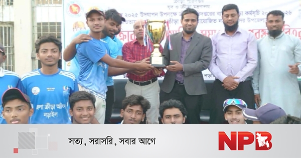 তারুণ্যের উৎসব ২০২৫ উদযাপন উপলক্ষে ক্রীড়া অরিদপ্তরের বার্ষিক ক্রীড়া কর্মসূচি ২০২৫-২৬ এর আওতায় নড়াইল জেলা ক্রীড়া অফিসের আয়োজনে তারুণ্যের উৎসব ২০২৫ ক্রিকেট প্রতিযোগিতা ও পুরষ্কার বিতরণ করা হয়েছে।