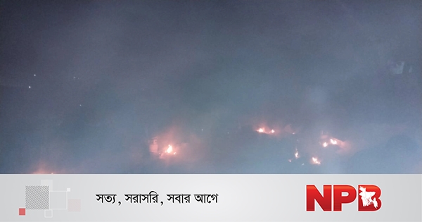 আগুনে ইটভাটার শ্রমিকদের থাকার ২০টি টিনের ঘর পুড়ে গেছে ।
