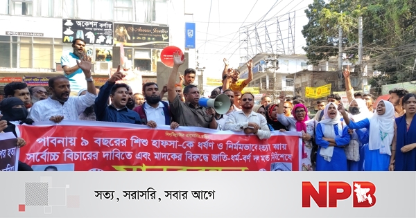 সোমবার (১৮) নভেম্বর সকাল দশটা থেকে শুরু করে দুপুর ১২ টা পর্যন্ত ধর্ষকের ফাঁসি ও আসামিদের গ্রেফতারের দাবিতে সড়ক অবরোধ ও বিক্ষোভ মিছিল করে পাবনা জেলার বিভিন্ন স্কুল ও কলেজের শিক্ষার্থী ও সচেতন নাগরিকেরা।