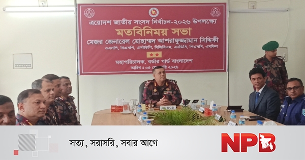 আসন্ন জাতীয় সংসদ নির্বাচন উপলক্ষে সার্বিক আইনশৃঙ্খলা ও নিরাপত্তা পরিস্থিতি পর্যবেক্ষণের জন্য পঞ্চগড়ের তেঁতুলিয়ায় মতবিনিময় সভা করেছেন বিজিবি মহাপরিচালক মেজর জেনারেল মোহাম্মদ আশরাফুজ্জামান সিদ্দিকী।