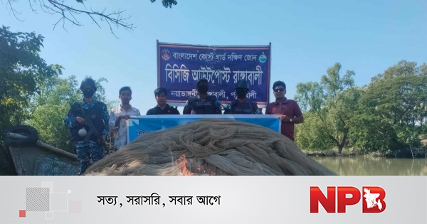 পটুয়াখালীর রাঙ্গাবালী উপজেলার রাবনাবাদ ও আগুনমুখা নদীতে বিশেষ অভিযানে প্রায় ৫০ হাজার মিটার অবৈধ জাল জব্দ করে পুড়িয়ে দিয়েছে উপজেলা মৎস্য বিভাগ ও কোস্টগার্ড।