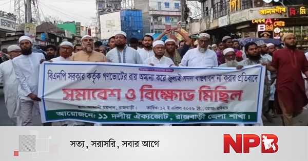 গণভোটের রায় বাস্তবায়ন এবং জুলাই সনদ কার্যকর করার দাবিতে রাজবাড়ীতে বিক্ষোভ মিছিল ও সমাবেশ অনুষ্ঠিত হয়েছে। রবিবার বিকাল সাড়ে ৫টার দিকে ১১ দলীয় জোটের উদ্যোগে শহরের আজাদী ময়দানে এ কর্মসূচি পালিত হয়।