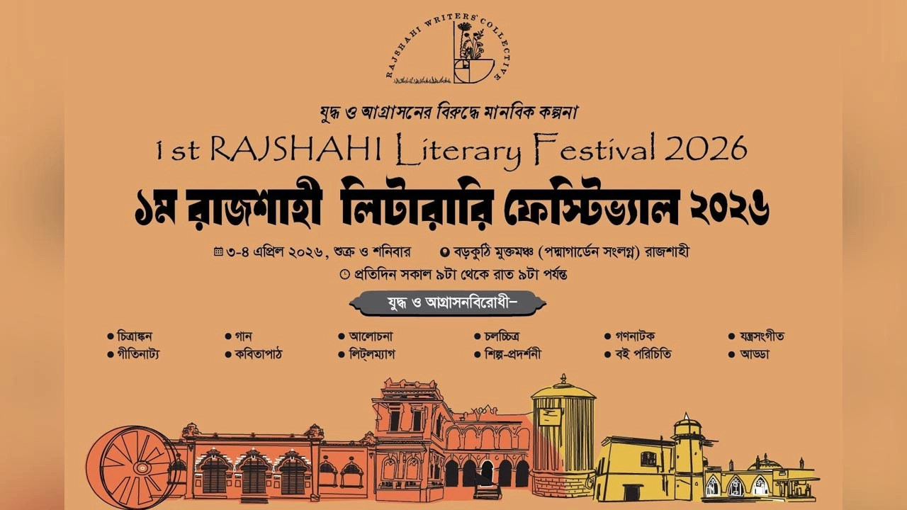 সাহিত্য, শিল্প ও মানবিক প্রতিরোধের বার্তা নিয়ে রাজশাহীতে শুরু হতে যাচ্ছে দুই দিনব্যাপী “১ম রাজশাহী লিটারারি ফেস্টিভ্যাল ২০২৬”। নগরীর বড়কুঠি মুক্তমঞ্চে (পদ্মাগার্ডেন সংলগ্ন) আগামী ৩ ও ৪ এপ্রিল, শুক্র ও শনিবার দুইদিনব্যাপী এ উৎসবের আয়োজন করেছে রাজশাহী রাইটার্স কালেকটিভ।
