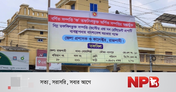 সাইনবোর্ডে উল্লেখ করা হয়েছে, জায়গাটি ‘ক’ তফসিলভুক্ত অর্পিত সম্পত্তি (ভেস্টেড অ্যান্ড নন-রেসিডেন্ট প্রপার্টি)। এতে বলা হয়, বাংলাদেশ সরকারের পক্ষে এই সম্পত্তির ব্যবস্থাপনার দায়িত্বে রয়েছেন রাজশাহী জেলা প্রশাসক ও কালেক্টর।