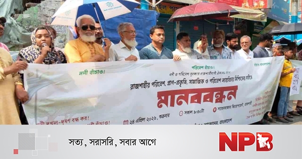 রাজশাহীতে পরিবেশ, প্রাণ-প্রকৃতি ও সামাজিক ন্যায়বিচার নিশ্চিতের দাবিতে মানববন্ধন