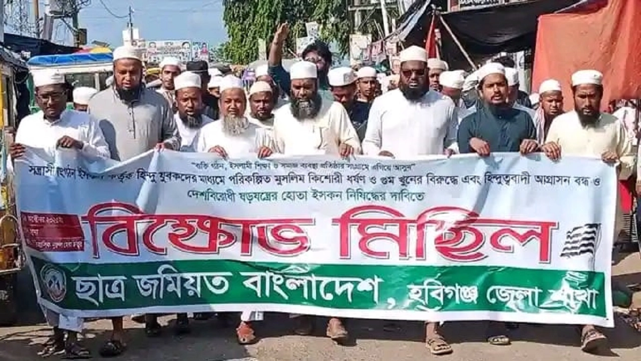 হিন্দুত্ববাদী সন্ত্রাসী সংগঠন ইসকনের পরিকল্পিত মুসলিম কিশোরী ধর্ষণ, গুম ও খুনের ঘটনাসহ দেশবিরোধী ষড়যন্ত্রের প্রতিবাদে এবং ইসকন নিষিদ্ধের দাবিতে ছাত্র জমিয়ত বাংলাদেশ হবিগঞ্জ জেলা শাখার উদ্যোগে এক বিক্ষোভ মিছিল অনুষ্ঠিত...